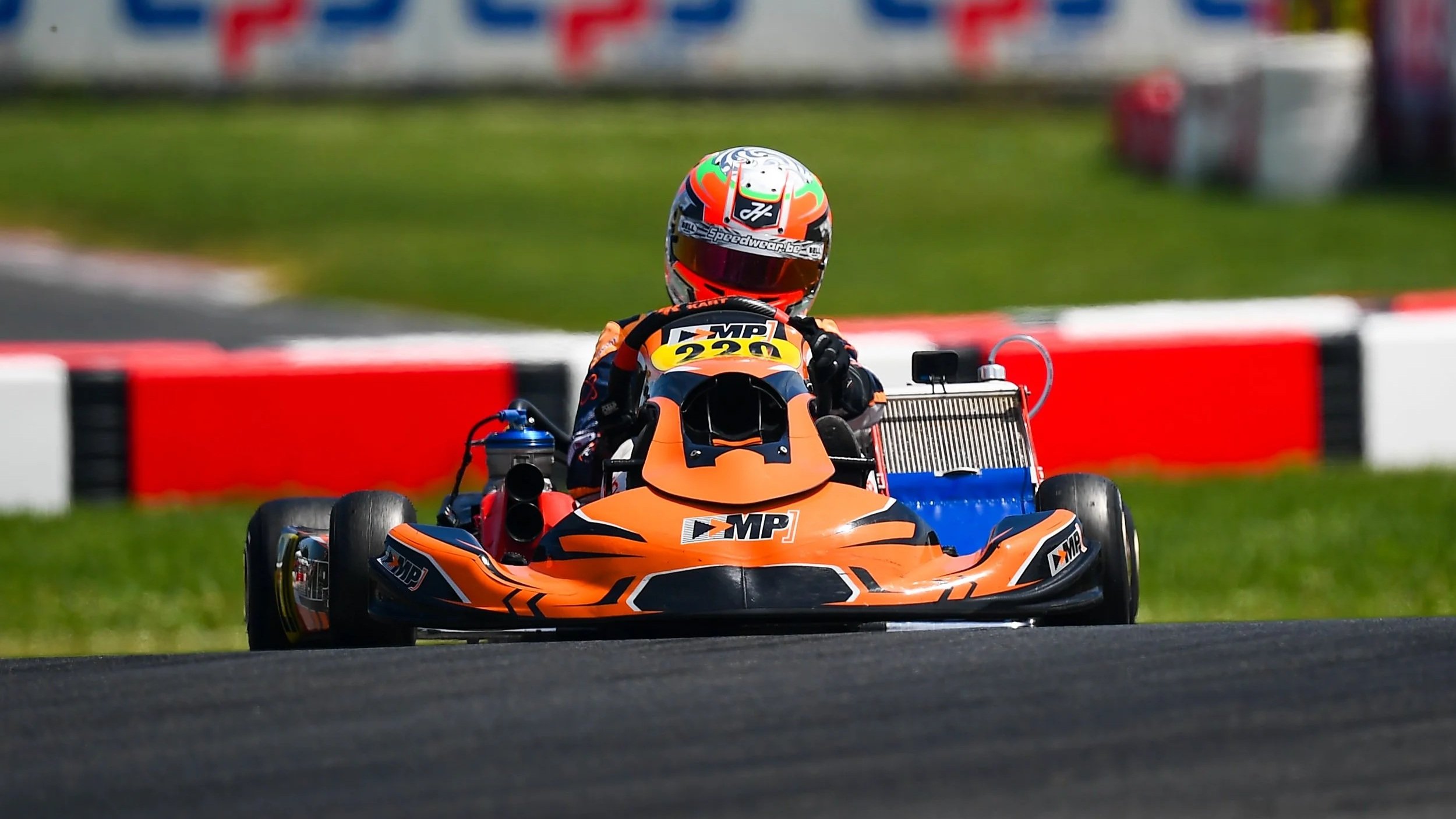MP logo and colors shining on the Henza kart of Jorn Helder